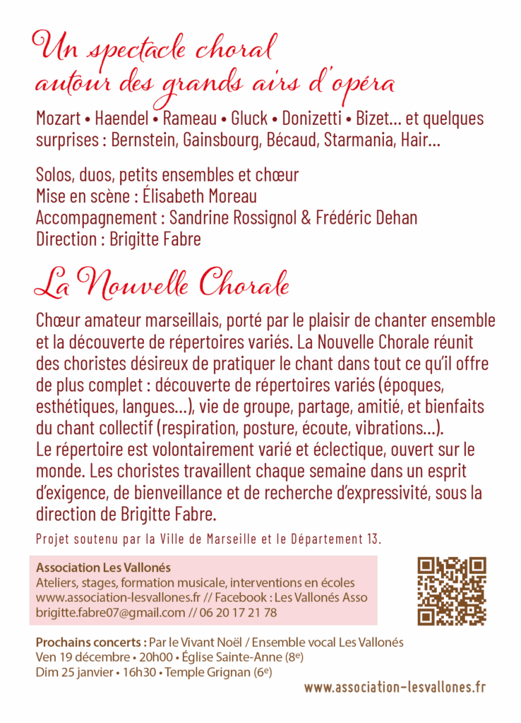 Répétition tous les mercredis de 18:30 à 21 :30 / 6 rue Eydoux, 13006. Pour choristes confirmées.