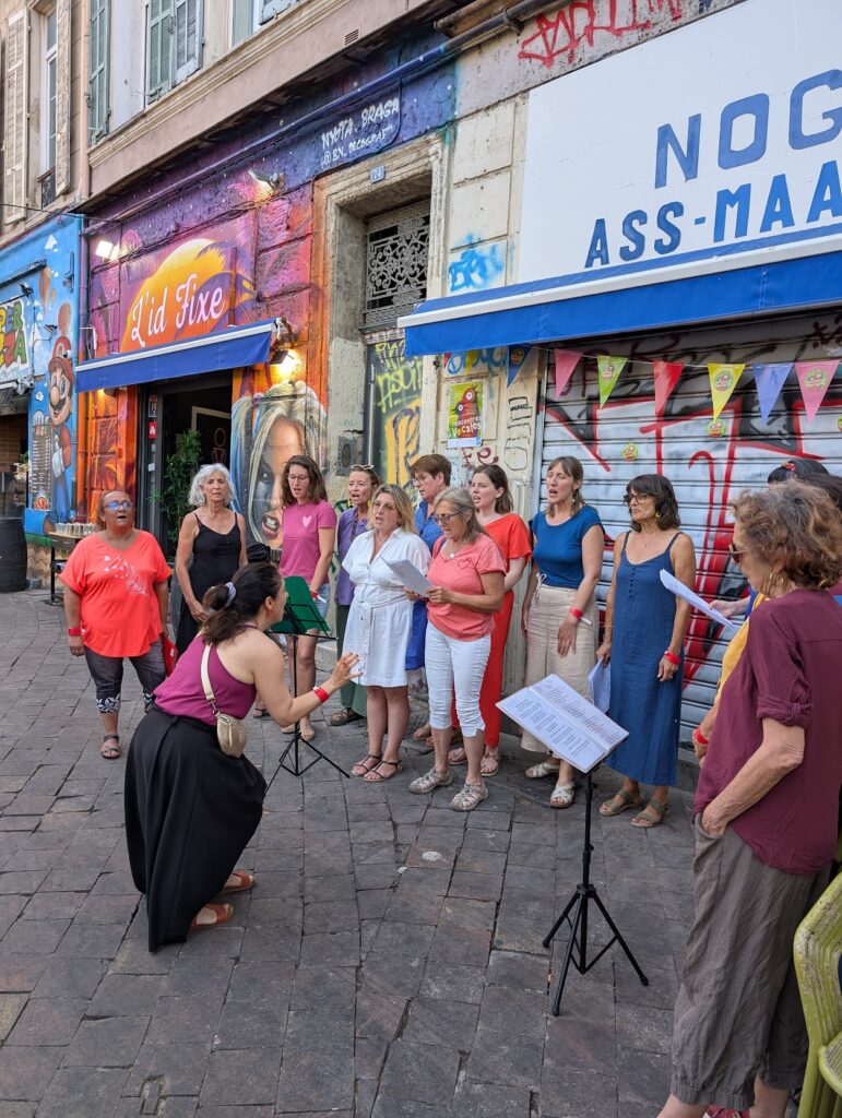 Le chœur du Centaure /Julie Avril ● Gyptis – Bénédicte Pereira ● Attacca / Sébastien Boin ● Méditerranéo / Sarah Cattan ● Zapkhuli / Nicolas Leguet ● Les Vallonés, les Belles de Mai, la Nouvelle Chorale, le chœur de la Magalone / Brigitte Fabre ● L’Atelier de chant yiddish / Léa Platini ● Vives Voix / Clara Sfez ● Atelier Slam poésie / Jérome Pinel ● Le chœur d’ados du Conservatoire de la Ciotat / Véronique Van Lerberghe ● Méditerranéo Provence – Sarah Cattan ● Zapkhuli – Nicolas Leguet ● Meet and Sing – Galite ● Sonkolors – Sébastien Archelas ● @phone, Les Voix de Mars – Cécile Andrée ● Chants de femmes – Lise Massal ● Acanthe – Jean-Luc Keck ● Des notes (ex-Aix Tralala) – Anne-Solène Ravalec ● Amadei Voces – Anne Bence ● Atelier Eoukounat – Florence Boué-Croisy ● Bel Air – Isabelle Guien ● Callesol – Pati Gajardo ● Choralequine, Injabulo – Deborah Bookbinder ● La Bande à Séon – Marianne Suner ● L’Académie du Chant Populaire – Alain Aubin ● L’Albizzia – Benoît DUMON ● Le chant du voisin, Les voisines – Cati DELOLME ● Les Ateliers de St Martin – Damien Legrand ● Les Cantatrices – Marie-Pierre Filloux ● Le Chœur de Jeunes de la Maîtrise du Conservatoire, Soléa – Anne Périssé dit Préchacq ● Les Voix Voyageuses – Deborah Nabet ● Massilia Sounds Gospel – Greg RICHARD ● Tous & Go, La Bande à Séon – Marianne Suner ● La Passacaille, Istres – Amine Soufari ● Circle Song & Body Percussion – Barth Russo ● Ad Fontes Canticorum – Jan Heiting ● Accrovoix – Léa ● Antequiem – Philippe FRANCESCHI ● Adventi Voce – Jean DEVARD (Roquebrune-sur-Argens) ● Alinéa 4, Article 9, Jean MAROTTA, Anne LATZ (Correns) ● Chorale seniors Mélodie St Georges, Dany GIORDANO ● Classe de 5è B Collège Malrieu, chansons Pop anglaise ; Serge ANTUNÈS ● Compagnie Loucine, Cécile VOLTZ ● Eclats de Voix Daria KUCEVALOVA ● Gare à l’Harmonie, chœur de l’Estaque-gare ● Groupe vocal des jeunes du Conservatoire de musique du Sud-Luberon, Philippe Franceschi ● Harmony tootsweet Brigitte DELEPINE ● L’atelier Jean Fara , B. Fabre ● La chorale de l’Université de la Méditerranée, la chorale de l’AMU/AP-HM Patrick LUPPI ● La Krorale, Michel ARNAUD ● La Madrigalerie, Oynack – Michel CORRADI (84) ● La Montgrand chorale -Nesko HADZIMURATOVIC ● Le Chœur d’enfants d’Auriol / Eclats de voix, Daria KUCEVALOVA ● Le chœur de la Plaine à l’Etang Jean-Philippe Hernandez (Marseille/Rognac) ● Le chœur de Lolla /Le choeur de la Pointe Rouge,Simonne CHAGNIARD ● Le chœur de Malmousque, Bernard SPADARI ● Le Chœur des Autres, Grégory MARISCAL ● Le Chœur des gens, Pierre PROUVEZE ● Le White Spirit Band, Francois VEY (Paris) ● Les Baladins de l’Estello, DanielleSTEFAN ● Les Cantarelles, Les Chœurs du comptoir, Pascal GOBIN, Hélène FORCE ● Les échos du jardin, Isabelle GUIEN ● Les Indéchiffrables du mardi / la Belle Equipe, Brigitte CIRLA ● Les polyphonies bourlingueuses, Marie PROST ● Groupe Arabo-Andalou, Les Voix-là, Lucie PRODHOMME ● Massalia Consort, Patricia LEROUX ● Mikado, Marc KOULISHER (Veynes, 05) ● New Grizzell Chorus – Martin GRIZZELL ● No Divas / 285 / Bel Air Isabelle GUIEN ● Oaï Note ● Polyfemna – Marie-Hélène SALVI (Bourg d’Oisans)